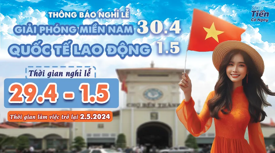THÔNG BÁO NGHỈ LỄ GIẢI PHÓNG MIỀN NAM VÀ QUỐC TẾ LAO ĐỘNG Kính gửi Quý khách hàng,Quý đối tácSAWAD Tiền Có Ngay trân trọng thông báo đến quý khách […]