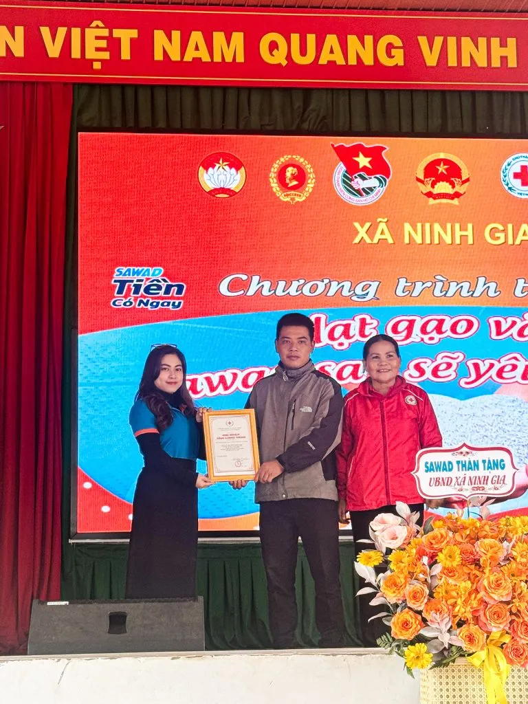 “Hôm nay là một ngày rất đặc biệt và rất là có ý nghĩa cho ngày Thương binh Liệt sỹ. Công ty Sawad đã đến và tặng những món quà rất ý nghĩa đối với những người nghèo và những gia đình chính sách có hoàn cảnh đặc biệt khó khăn tại xã Ninh Gia. Cô rất vinh dự, rất tự hào được đón tiếp đoàn đã đến và trao tặng những món quà yêu thương cho người dân nghèo tại địa phương. Xin trân trọng cảm ơn các con rất nhiều.”