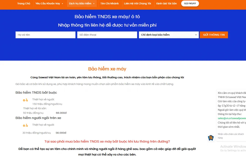 2. Hướng dẫn mua bảo hiểm xe trên trang website Sawad Việt Nam