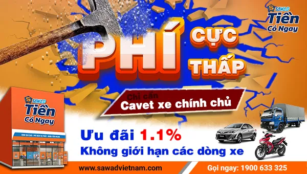 Cầm cavet/ giấy đăng ký xe máy – ô tô với mức hỗ trợ lãi suất 1.1% (tương đương 13.2%/năm), từ lâu đã thu hút sự quan tâm của không ít khách hàng. Với mức lãi suất trên chưa bao gồm phí khác trung bình quý khách nhận 10 triệu chi phí mỗi tháng thanh toán chỉ tầm 1triệu200/ tháng. Hãy cùng SawadViệtNam tìm hiểu chi tiết ngay trong bài viết này!